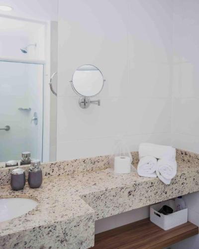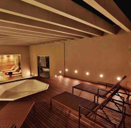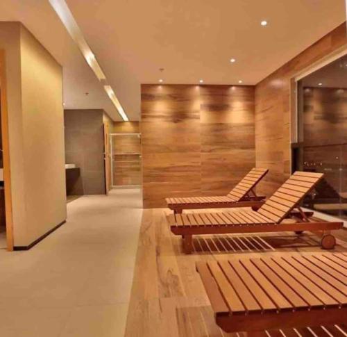 客人在Flat Completo para uma estadia perfeita NOTA FISCAL入住期间可以使用Spa和康体设施,包括桑拿房、热水浴池和土耳其浴室。这家住宿配备阳光露台。