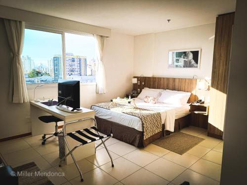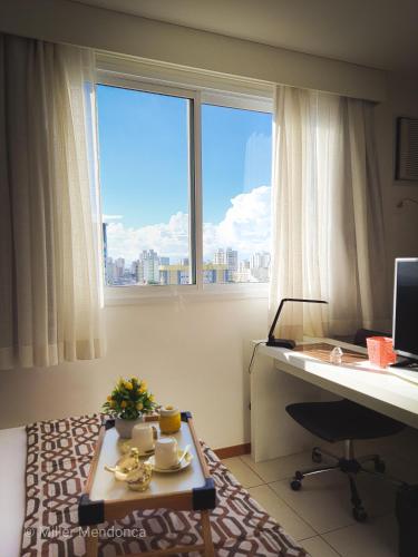 Flat Completo para uma estadia perfeita NOTA FISCAL位于坎普斯戈伊塔卡济斯,提供带免费WiFi的市景客房,配备健身中心、共用休息室和餐厅。这家住宿的客人可以使用桌球台和免费私人停车位。