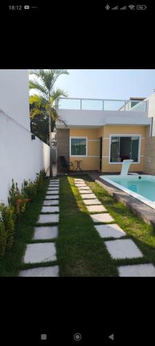 Casa temporada Jauá位于卡马萨里,享有花园景,配备客房、私人泳池和阳台。这家住宿距离豪阿海滩(Jaua Beach)有1.8公里,提供露台和免费私人停车位。