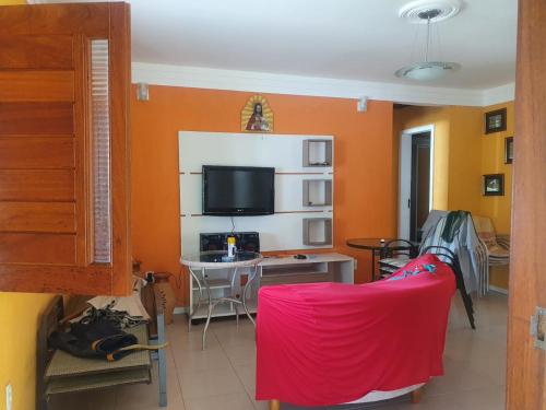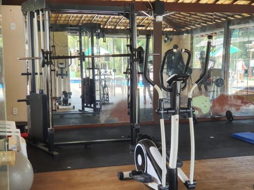 Litoral Norte Jacuípe Guarajuba享有花园景,配备户外游泳池、健身中心和花园,距离加西亚-达维拉城堡约有42公里。这家度假屋配有免费私人停车位。客人可以在周边地区体验徒步和桌球等活动。