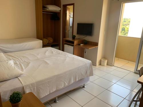 GOLDEN DOLPHIN Resort - Grand & Express - Caldas Novas - COM TV A CABO - Aguas Termais提供带桑拿房和露台的舒适型住宿。