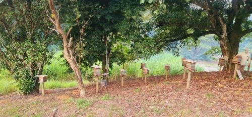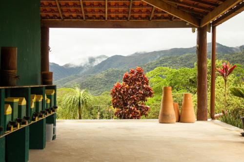 Sítio com piscina natural Cachoeiras de Macacu位于里约热内卢州的卡舒埃拉斯迪马卡库,拥有庭院,享有河景。这家住宿的客人可以使用阳台、免费私人停车位和免费WiFi。