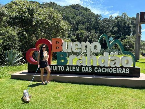 Chalé rústico de madeira perto de cachoeira坐落于布埃诺布兰当,配备带阳台和免费WiFi的自助式住宿。这家自助式小木屋拥有花园和免费私人停车位。