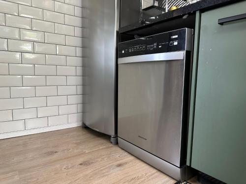 这家空调公寓配有2间卧室、起居室、带冰箱和咖啡机的设施齐全的厨房以及1间带淋浴设施和热水浴池的浴室。1间浴室配有浴缸,也配备免费洗浴用品,提供毛巾和床上用品。