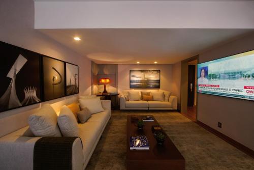Kubitschek Plaza Hotel酒店典雅的客房提供阳台、空调、迷你吧、有线电视,以及带免费洗浴用品和吹风机的私人浴室。高级房型提供spa浴缸和浴袍。