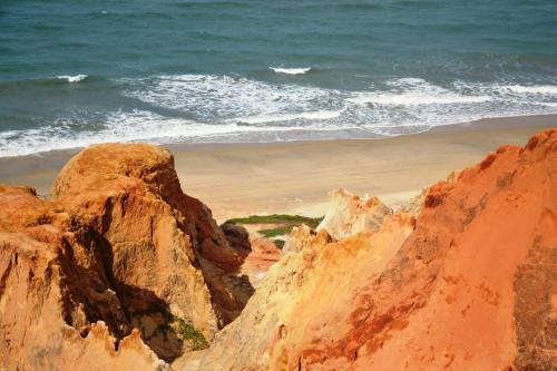 Pousada dos Hibiscos坐落于贝贝里比,距离莫罗布兰科海滩(Morro Branco Beach)有14分钟步行路程,配备户外游泳池、免费私人停车位、花园和共用休息室。客房提供花园景阳台和免费WiFi.