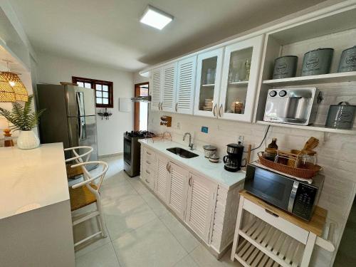 这家度假屋的客人可以使用桑拿浴室。Casa a 4 Min da Praia de Manguinhos com Piscina, Sauna e Área Kids配备室外泳池和儿童游乐场。