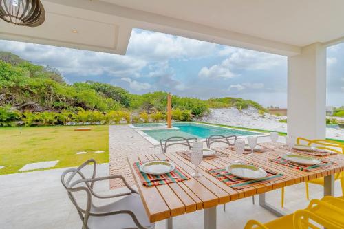 SA06 Excelente Casa 5 Suítes - Reserva de Sauípe位于科斯塔萨乌佩,距离绍佩海岸海滩(Costa do Sauipe Beach)有不到一公里。客人可以使用室外泳池、免费WiFi和24小时前台。这家自助式度假屋配有私人泳池、花园和免费私人停车位。
