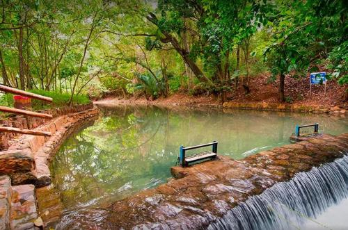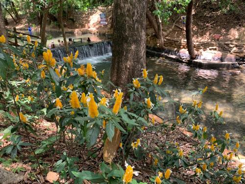 Apartamento no Aguas da Serra TOP提供各种康体设施,包括桑拿房、土耳其浴室和温泉浴池。这家住宿提供水上公园和花园。