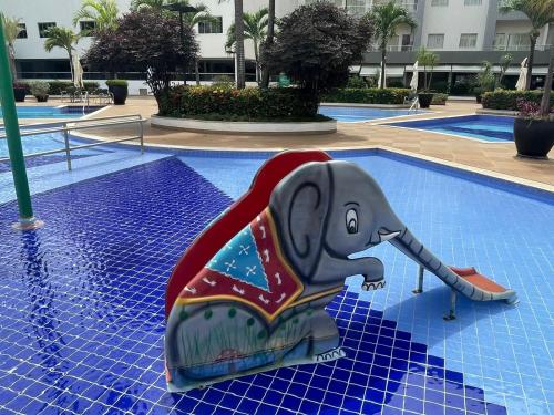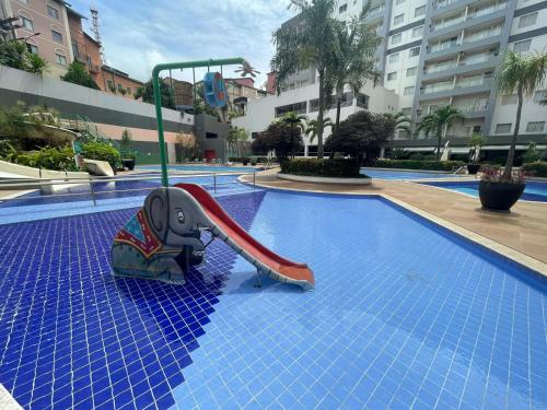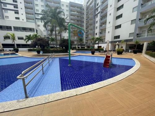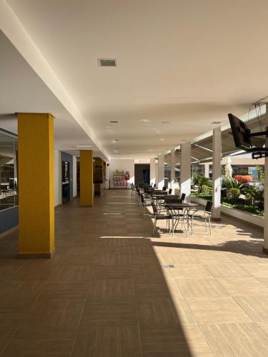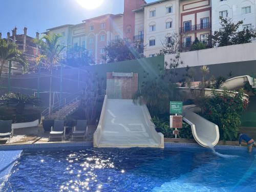 Flat 501 - Condominio Veredas do Rio Quente - Diferenciado com ar na sala e no quarto位于热河市,提供免费WiFi、空调、户外游泳池和健身中心,距离迪卡罗马公园有26公里,距离温泉公园有不到一公里。这家公寓配备免费私人停车位和儿童俱乐部。