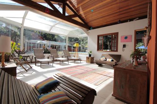 Pequena Suécia is surrounded by natural gardens and offers a daily breakfast, an outdoor pool, a spa and a sauna. It features a large DVD library and offers Wi-Fi access is free.