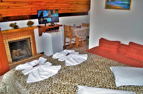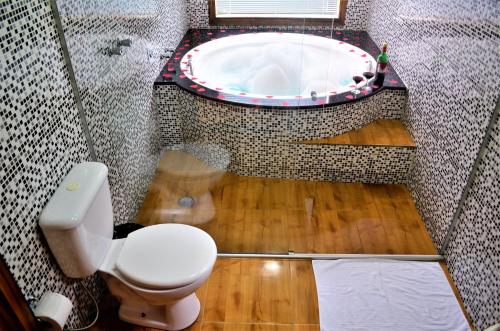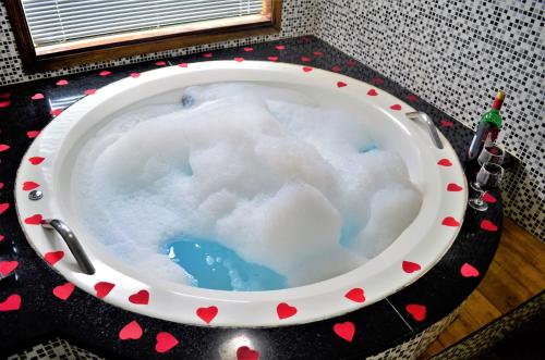 简易别墅提供壁炉,拥有迷人的装饰,享有山景。部分小木屋提供带热水淋浴的私人浴室,其他小木屋提供spa浴缸。客房还配有电视、DVD播放机和迷你吧。