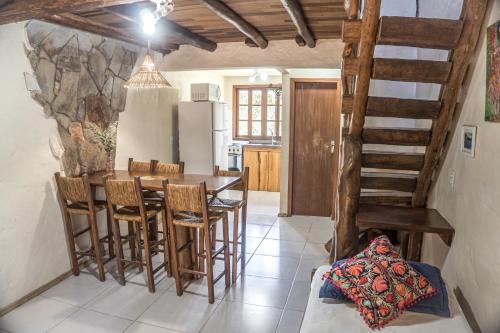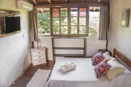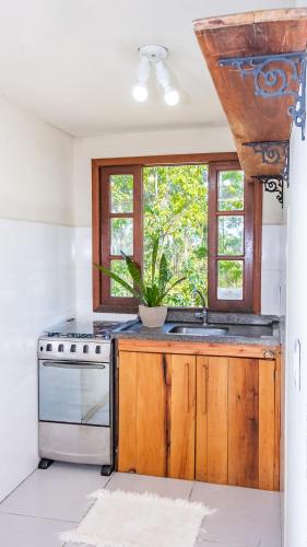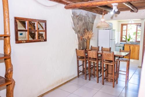 Pousada Morro das Palmeiras旅馆的所有木屋均提供1个阳台和风扇,还提供1间带冰箱、烤箱和炉灶的厨房,以及1个用餐区和1间浴室。