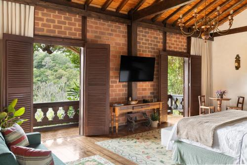 Pedra Azul Pousada宾馆的所有客房均设有阳台、暖气、有线电视和浴室。客房采用深色木制家具装饰的高雅风格,并提供床单和浴巾。