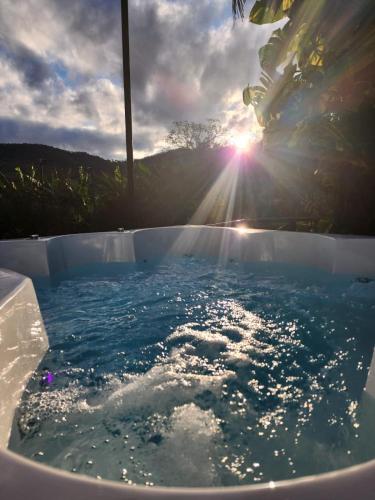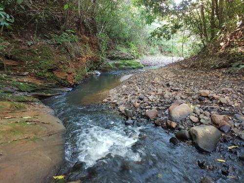 Cabana Hostel nas Árvores EcoPark位于圣代佩德罗,享有池景,提供户外游泳池、花园、共用休息室、露台和酒吧。内部提供私人停车位。