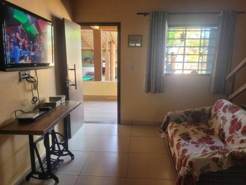 Conjunto de chalés no corumbá IV位于戈亚斯州的Santo Antônio do Descoberto,配有阳台,享有花园景。这家住宿提供私人泳池、免费WiFi和免费私人停车位。