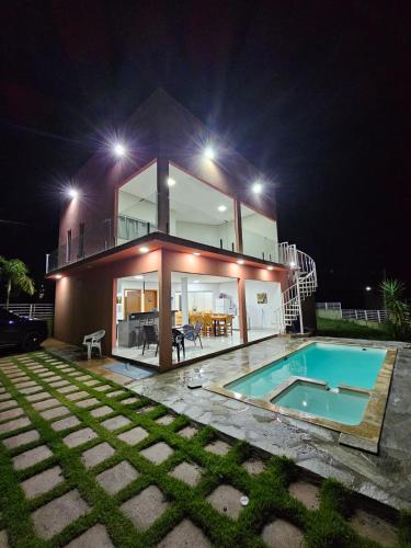 Rancho lazer no Lago Corumbá 4位于Alexânia,提供带免费WiFi的池景客房,配备户外游泳池。这家自助式度假屋拥有私人泳池、花园和免费私人停车位。
