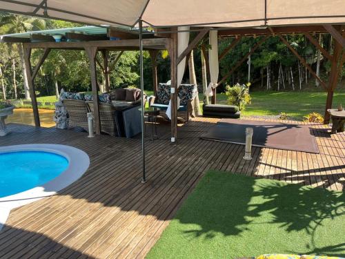 Lindo sítio com belíssima paisagem para descansar位于Cobras。这家自助式度假屋配有私人泳池、花园和免费私人停车位。