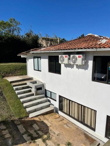 Villa Santorini Praia do Rosa com piscina e jacuzzi坐落于普腊亚罗萨,距离杜罗莎海滩(Praia do Rosa Beach)有2.4公里,距离加罗帕巴巴士站有17公里,提供餐厅和空调。这家自助式别墅拥有私人泳池、花园、烧烤设施、免费WiFi和免费私人停车位。