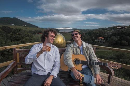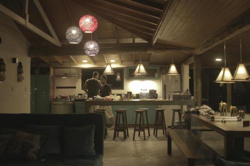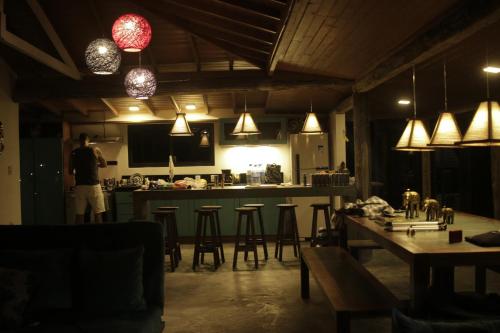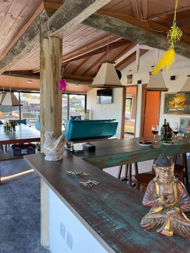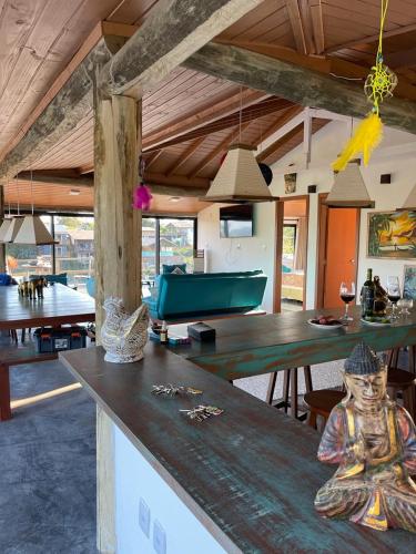这家别墅提供热水浴池。住宿内部配备室外泳池。客人可以在Villa Santorini Praia do Rosa com piscina e jacuzzi附近体验徒步和垂钓。
