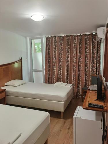 Hotel NAVI坐落于沙布拉,距离沙布拉海滩(Shabla Beach)有2分钟步行路程,配备花园、免费私人停车位、露台和餐厅。这家实惠型酒店配备酒吧,提供带免费WiFi和私人浴室的空调客房。这家酒店距离玛利亚女王宫殿有46公里,距离卡利亚克拉海角有38公里。
