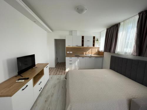 这家公寓配有1间卧室、2间浴室、床上用品、毛巾、平板电视、设施齐全的厨房以及花园景露台。2间浴室提供淋浴设施、免费洗浴用品和吹风机。