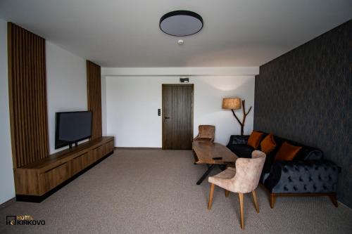 At the hotel, each room is equipped with a desk and a balcony with a mountain view. Some rooms are equipped with a kitchen with a fridge and a microwave. Guest rooms at Hotel Kirkovo are equipped with a seating area and a flat-screen TV with cable channels.