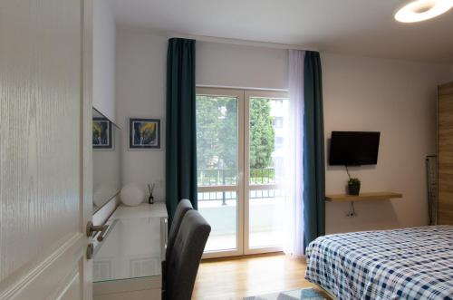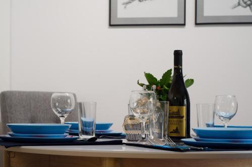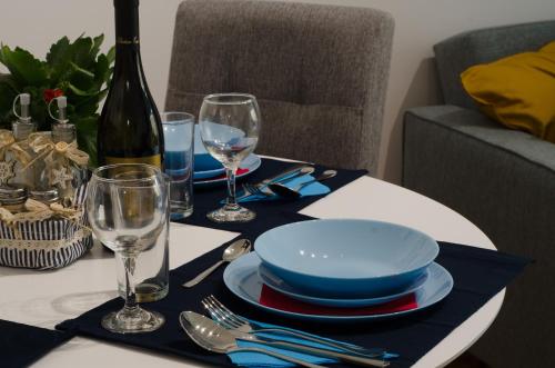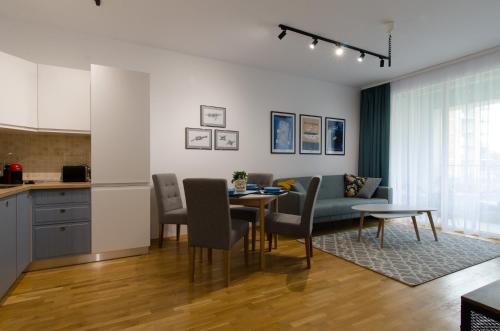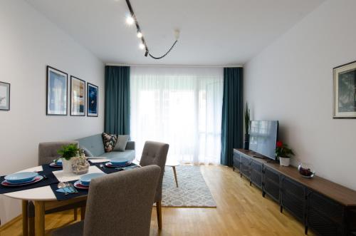 这家空调公寓配有1间卧室、起居室、带冰箱和咖啡机的设施齐全的厨房以及1间带淋浴设施和吹风机的浴室。这家公寓还提供休息区、洗衣机以及1间带拖鞋的浴室。