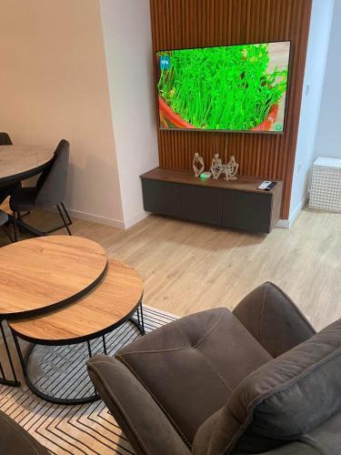 这家空调公寓配有1间卧室、起居室、带冰箱和电热水壶的设施齐全的厨房以及1间带淋浴设施和热水浴池的浴室。这家公寓还配备休息区、洗衣机以及1间带吹风机的浴室。