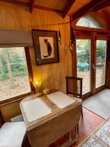 Pipowagen de Kat in de Hoge Kempen nabij Maastricht位于拉纳肯,提供带免费WiFi的花园景客房,配备花园、露台和餐厅。内部提供私人停车位。