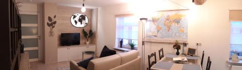 这家公寓配有1间卧室、起居室、带冰箱和咖啡机的设施齐全的厨房以及1间带淋浴设施和免费洗浴用品的浴室。1间浴室配有浴缸和洗衣机,也为客人提供吹风机和拖鞋。