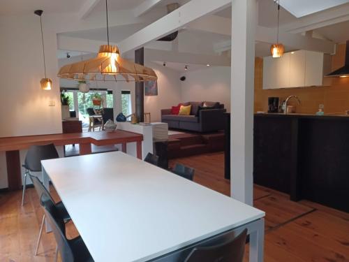 这家空调小木屋配有1间卧室、起居室、带冰箱和咖啡机的设施齐全的厨房以及1间带淋浴设施的浴室。这家小木屋也提供休息区和1间浴室。