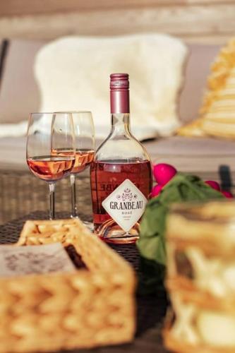 这家空调度假屋配有1间卧室、起居室、带冰箱和咖啡机的设施齐全的厨房以及1间带淋浴设施和免费洗浴用品的浴室。这家度假屋也配有休息区和1间浴室。