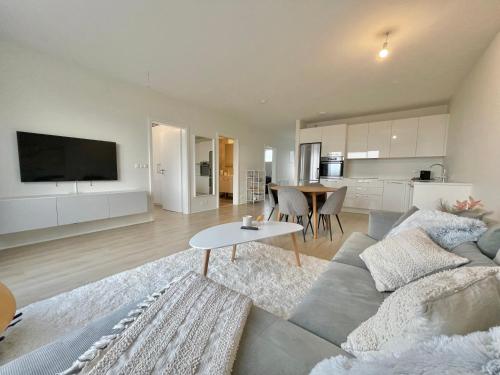 这家公寓提供阳台,享有海景,拥有3间卧室、起居室、平板电视、带冰箱和洗碗机的设施齐全的厨房以及1间带淋浴设施的浴室。1间浴室提供吹风机。