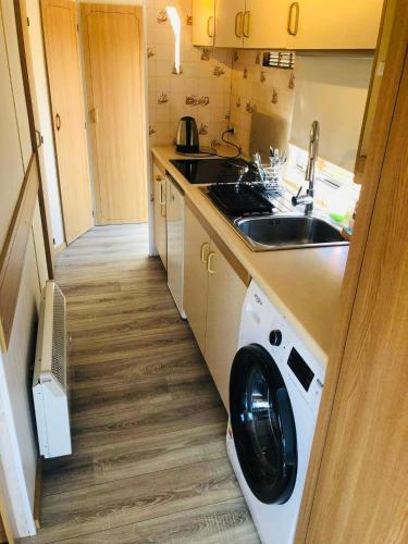 这家度假屋配有2间卧室、1间浴室、床上用品、毛巾、平板电视、用餐区、设施齐全的小厨房以及花园景露台。这家度假屋还提供休息区、洗衣机以及1间带淋浴设施的浴室。