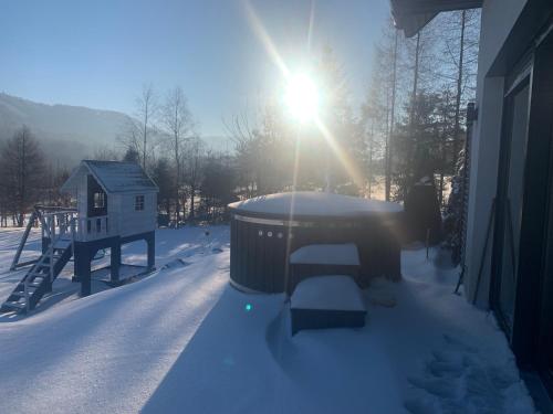这家度假屋提供儿童游乐区。经过一天的徒步、滑雪或骑行之后,客人可以在花园内或共用休息室放松身心。