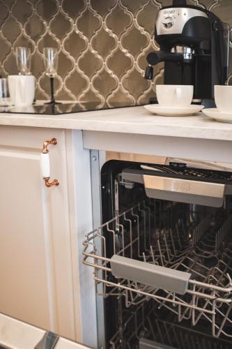 这家公寓提供1间卧室、带冰箱和洗碗机的小厨房、洗衣机以及1间带吹风机的浴室。这家公寓也配有1间浴室。