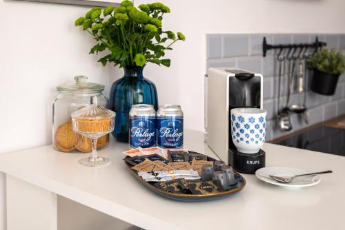 这家空调公寓配有1间卧室、起居室、带冰箱和咖啡机的设施齐全的厨房以及1间带浴缸或淋浴设施和免费洗浴用品的浴室。这家公寓还提供休息区、洗衣机以及1间带吹风机的浴室。