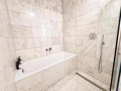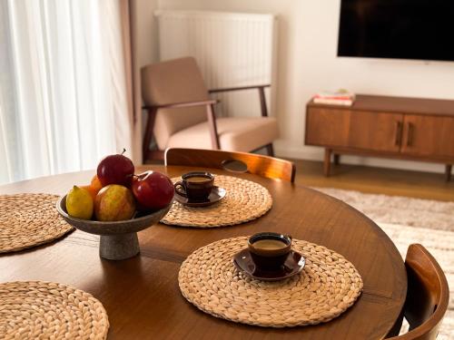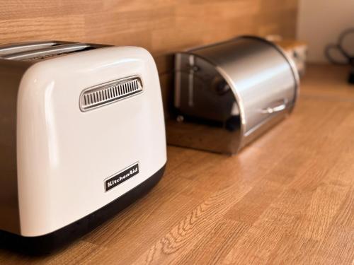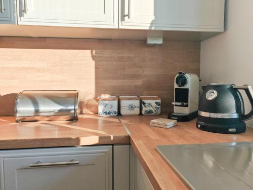 这家空调公寓配有1间卧室、起居室、带冰箱和咖啡机的设施齐全的厨房以及1间带淋浴设施和免费洗浴用品的浴室。1间浴室配有浴缸,也配备吹风机,提供毛巾和床上用品。