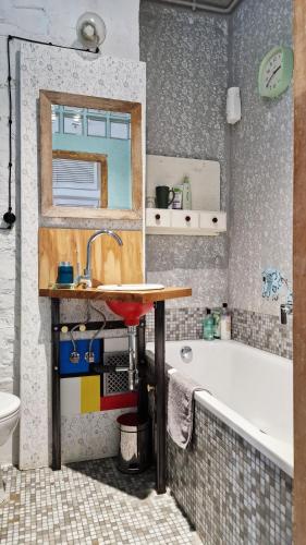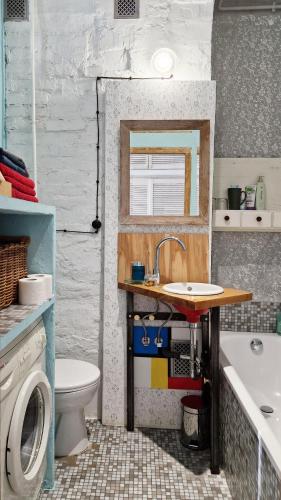 这家1卧室公寓配有起居室、平板电视、带冰箱和烤箱的设施齐全的厨房以及1间带吹风机的浴室。这家公寓还提供休息区、洗衣机以及1间带浴缸的浴室。
