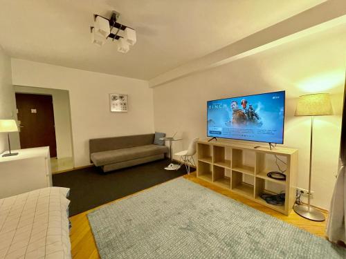 这家空调公寓配有1间卧室、起居室、带冰箱和电热水壶的设施齐全的厨房以及1间带淋浴设施和免费洗浴用品的浴室。这家公寓还提供平板电视以及1间带吹风机的浴室。