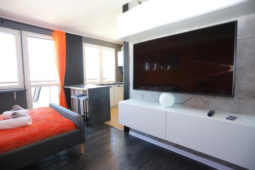 这家公寓提供阳台,享有市景,配有1间卧室、起居室、平板电视、带冰箱和微波炉的设施齐全的厨房以及1间带淋浴设施的浴室。这家公寓还提供休息区、洗衣机以及1间带吹风机的浴室。