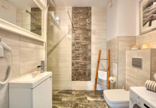 这家空调公寓配有2间卧室、起居室、带冰箱和电热水壶的设施齐全的厨房以及1间带淋浴设施和吹风机的浴室。这家公寓也拥有休息区和1间浴室。