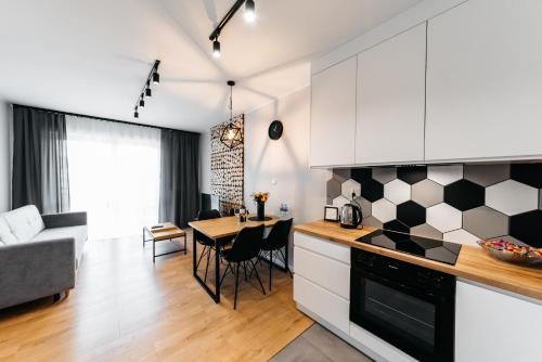 这家公寓提供露台,享有市景,拥有1间卧室、起居室、平板电视、带冰箱和洗碗机的设施齐全的厨房以及1间带淋浴设施的浴室。这家公寓还配备休息区、洗衣机以及1间带吹风机的浴室。