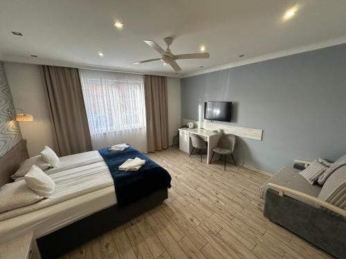 这家旅馆的每间客房都拥有书桌、平板电视、私人浴室、床上用品和毛巾。Maximus的部分客房提供阳台。所有客房都配有电热水壶。所有房间为客人提供冰箱。