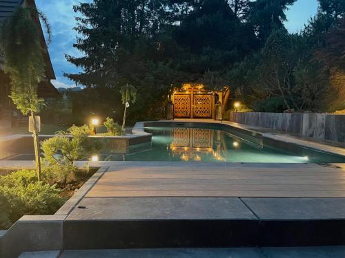 客人可以在室外泳池游泳,体验徒步或滑雪,或在花园内放松身心。