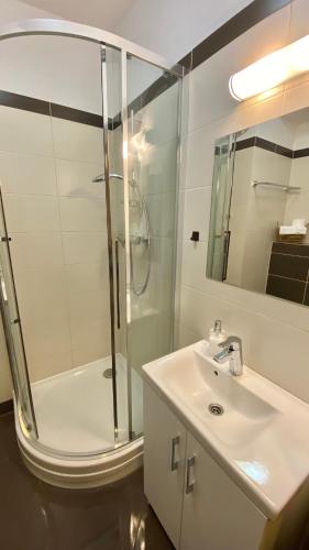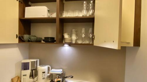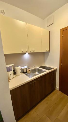 这家公寓配有1间卧室、起居室、带冰箱和咖啡机的设施齐全的小厨房以及1间带淋浴设施和吹风机的浴室。这家公寓也配有1间浴室。
