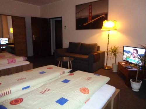 部分房间配有有线频道平板电视、带冰箱的设施齐全的厨房,以及带浴缸或淋浴设施和吹风机的私人浴室。