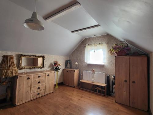 这家山林小屋提供露台,享有花园景,配有1间卧室、起居室、平板电视、带冰箱和烤箱的设施齐全的小厨房以及1间带淋浴设施的浴室。1间浴室提供吹风机。