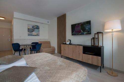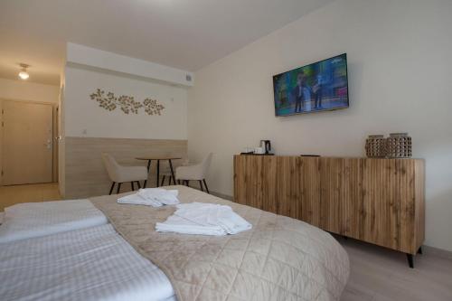 The reception is located across the street in the Baltic Spa aparthotel. Guests can use the Nautilus swimming pool for a fee. Moreover, a breakfast buffet and a dinner are served at the Baltic Spa. In the Baltic Spa, guests can take advantage of the offer of wellness and sauna treatments.